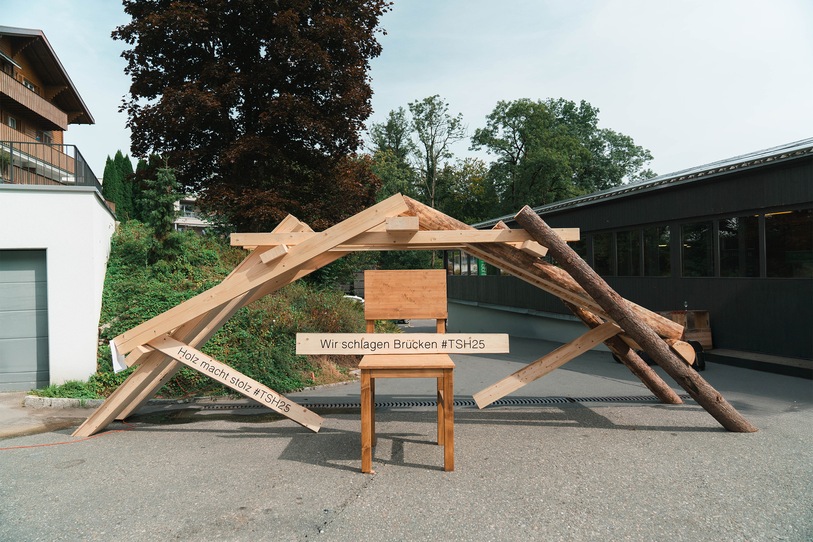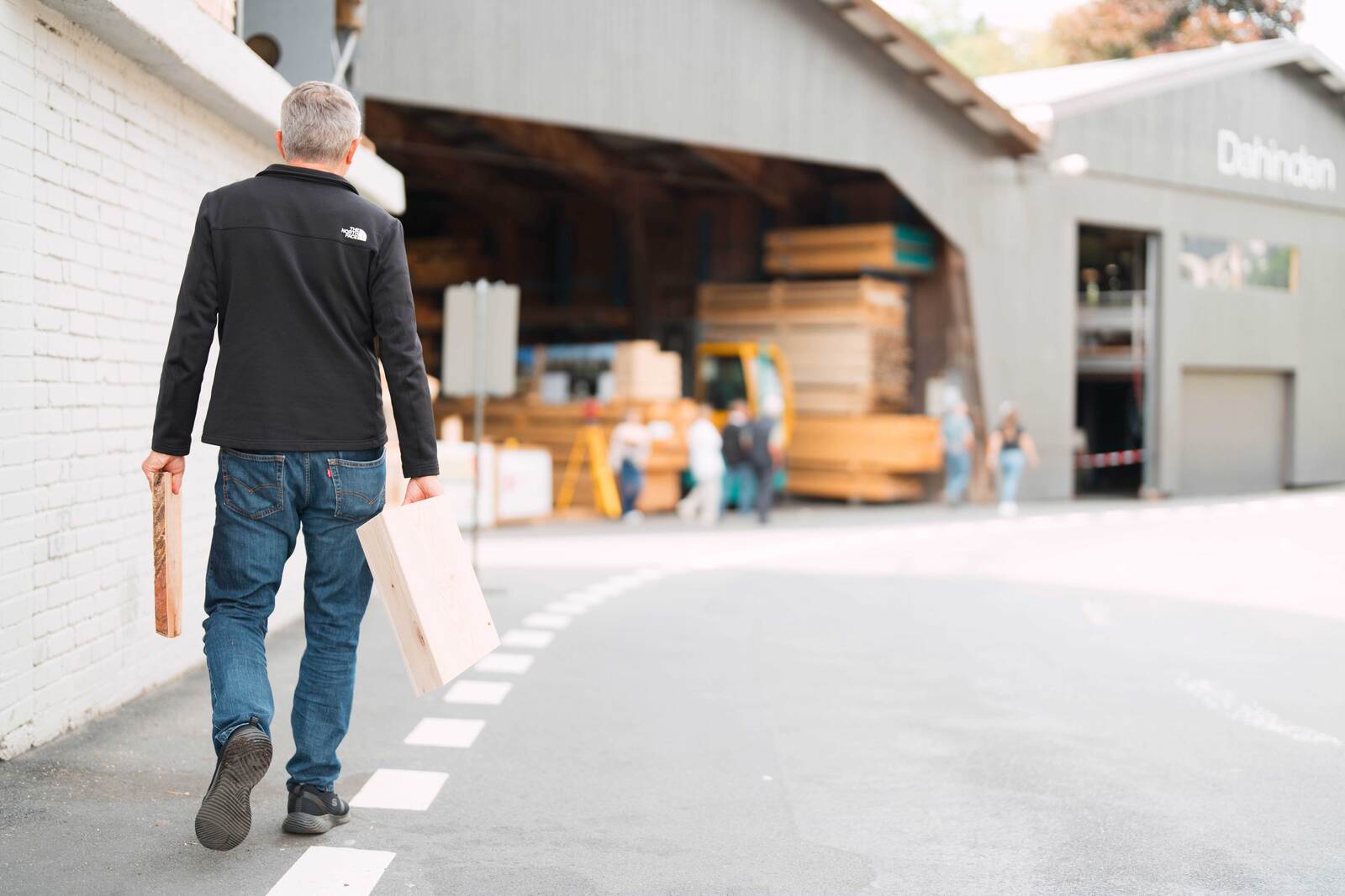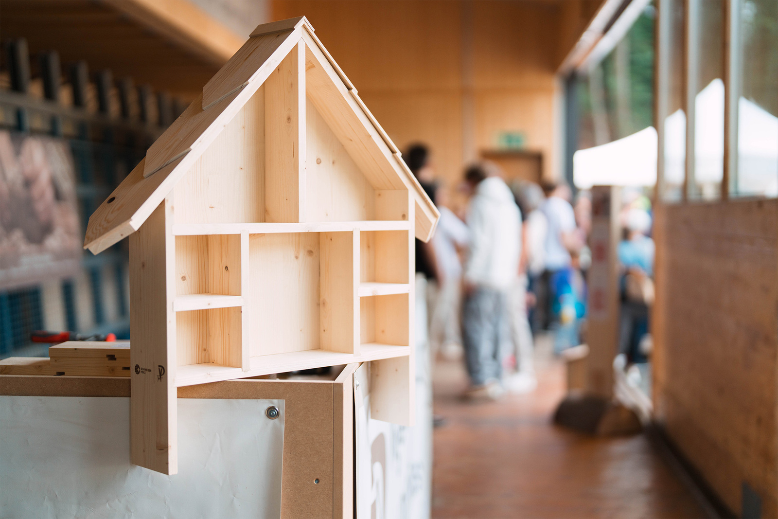 Am Samstag war das Gelände für die breite Öffentlichkeit zugänglich – und die Bevölkerung folgte der Einladung zahlreich. Über 1000 Besucherinnen und Besucher nahmen am interaktiven Rundgang teil, der sich wie ein roter Faden durch das Areal zog. Ergänzt wurde dieser durch zahlreiche Mitmachstationen und Highlights: Kinder und Erwachsene bauten ihr eigenes Vogelhaus, testeten ihr Wissen beim Wettbewerb, posierten am Selfie-Spot unter der imposanten DaVinci-Holzbrücke oder erklommen den XXL-Holzstuhl. Wer sich für eine Ausbildung interessierte, erhielt direkt vor Ort Informationen zu den verschiedenen Berufen der Holzbranche.
