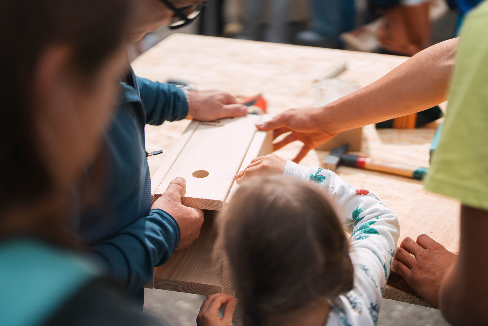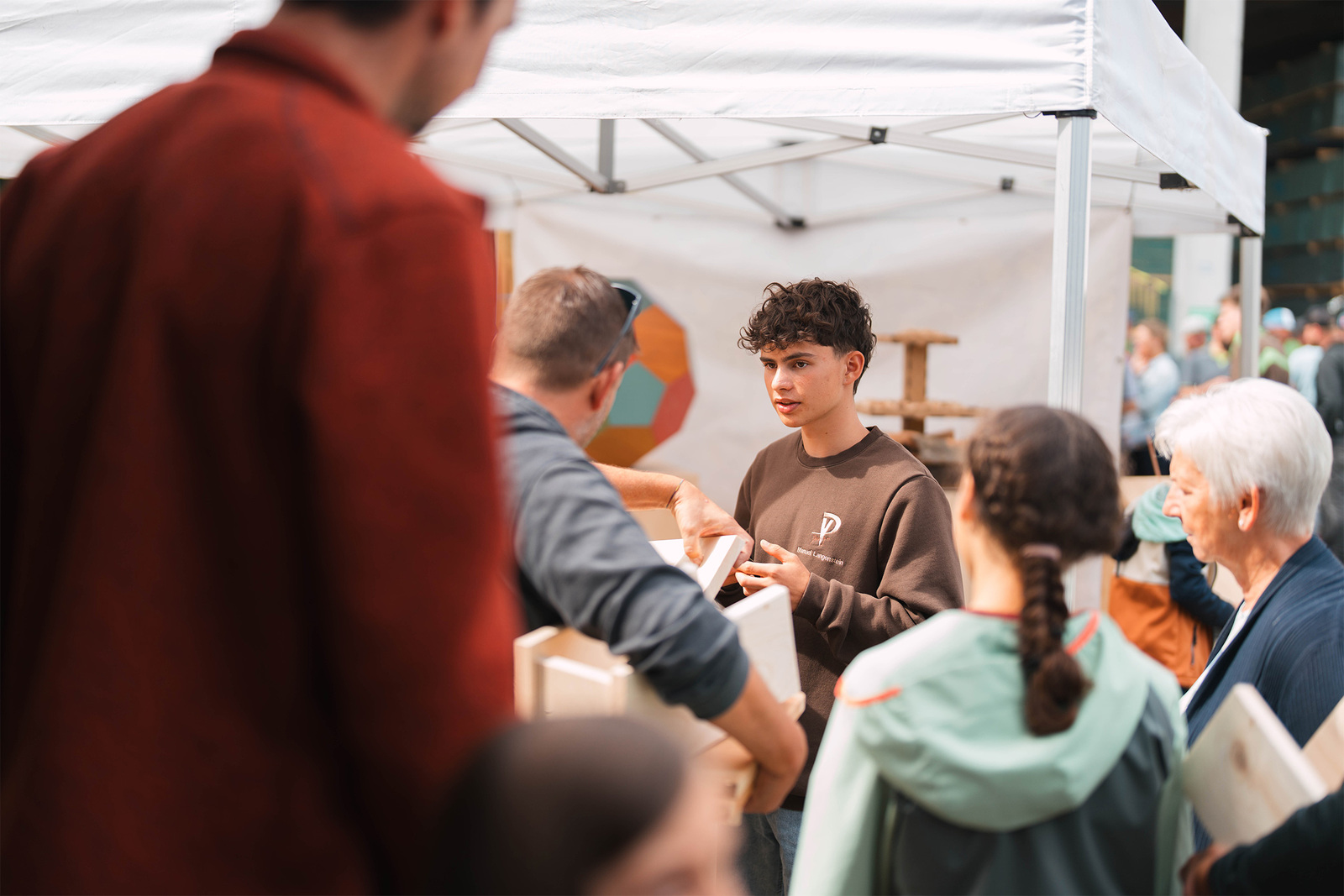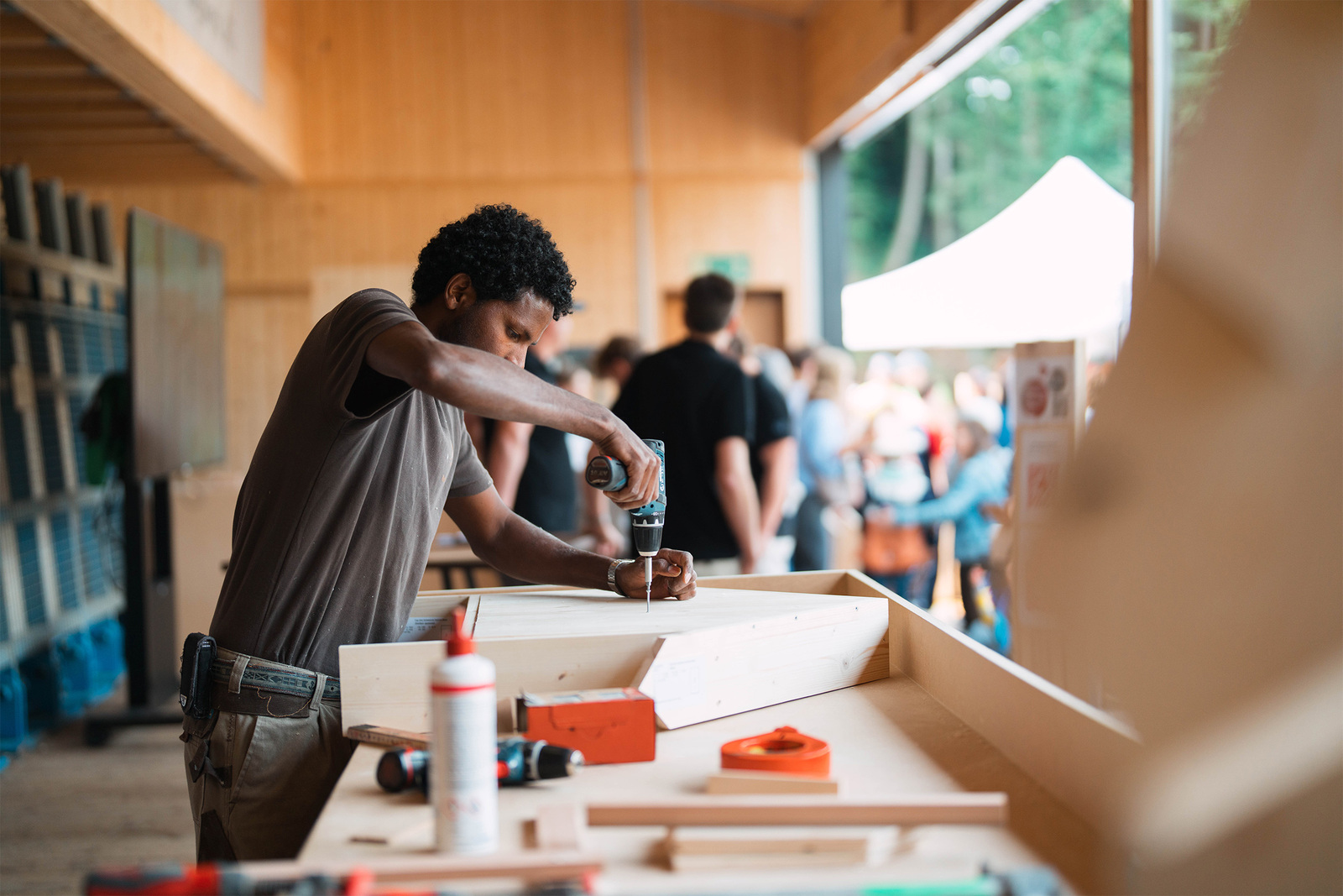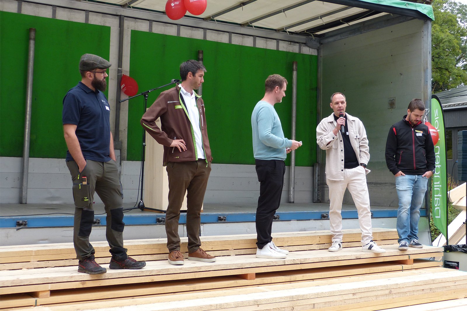 Am Samstag war das Gelände für die breite Öffentlichkeit zugänglich – und die Bevölkerung folgte der Einladung zahlreich. Über 1000 Besucherinnen und Besucher nahmen am interaktiven Rundgang teil, der sich wie ein roter Faden durch das Areal zog. Ergänzt wurde dieser durch zahlreiche Mitmachstationen und Highlights: Kinder und Erwachsene bauten ihr eigenes Vogelhaus, testeten ihr Wissen beim Wettbewerb, posierten am Selfie-Spot unter der imposanten DaVinci-Holzbrücke oder erklommen den XXL-Holzstuhl. Wer sich für eine Ausbildung interessierte, erhielt direkt vor Ort Informationen zu den verschiedenen Berufen der Holzbranche.