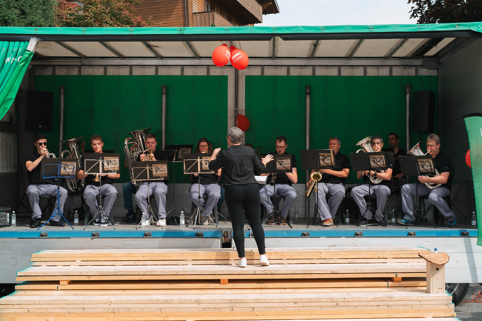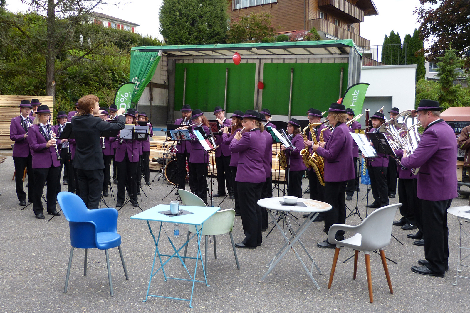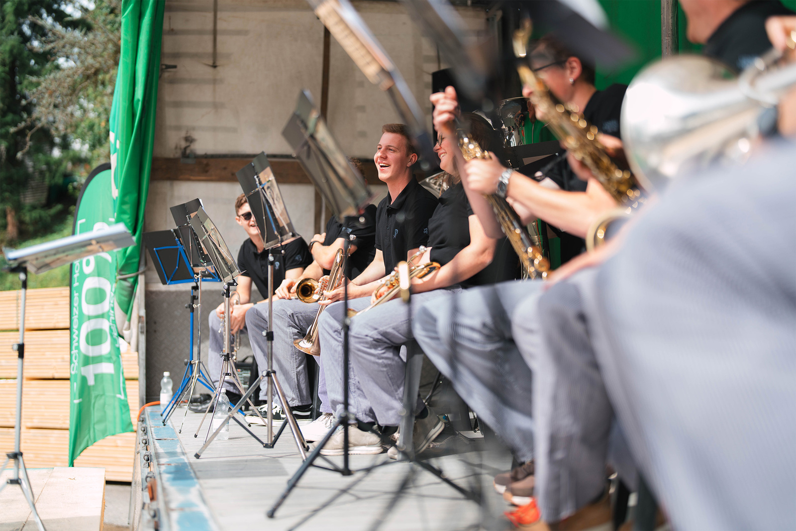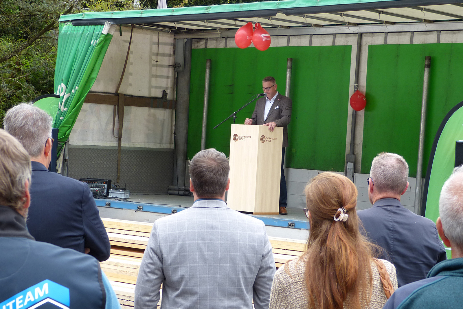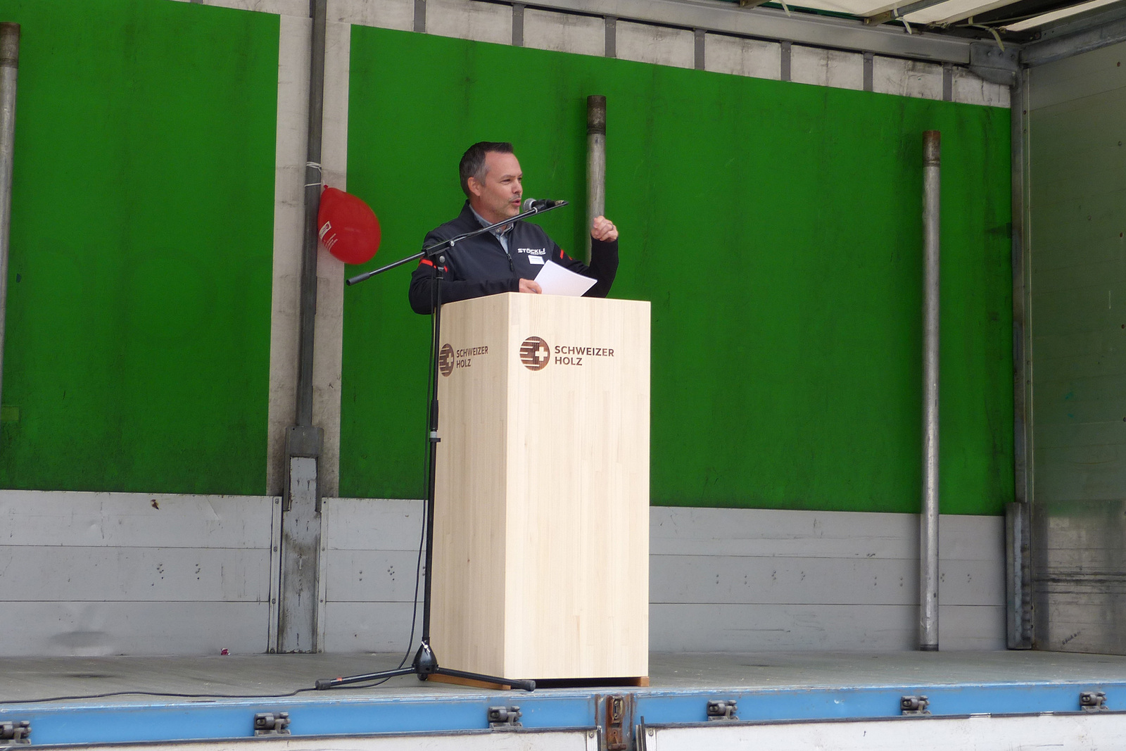 Am späteren Nachmittag durften die Organisatoren rund 150 geladene Gäste zum Feierabendevent begrüssen. Nationalrat Pius Kaufmann eröffnete die Veranstaltung mit einer Grussbotschaft, in der er die Bedeutung des Schweizer Holzes als ökologischen, sozialen und wirtschaftlichen Rohstoff hervorhob und die funktionierende Holzkette als zentralen Erfolgsfaktor betonte. Christoph Fuchs, CMO der Stöckli Swiss Sports AG, betonte in seinem anschliessenden Referat die Swiss-Made-Philosophie des Unternehmens – vom Design bis zur Produktion aller Ski in der Schweiz. Umso wichtiger sei es nun, auch das Grundmaterial wieder aus der Schweiz zu beziehen, nachdem der inländische Holzlieferant weggefallen sei. Sein Plädoyer: «Ohne Holz ist ein Ski nur ein Stück Technik. Mit Holz wird er lebendig.» Das Unternehmen Stöckli Swiss Sports AG produziert seit 90 Jahren in der Schweiz und hat im letzten Jahr rund 75’000 Ski hergestellt, die in über 30 Ländern verkauft werden. Musikalisch untermalt wurde der stimmungsvolle Abend von der Feldmusik Hellbühl.