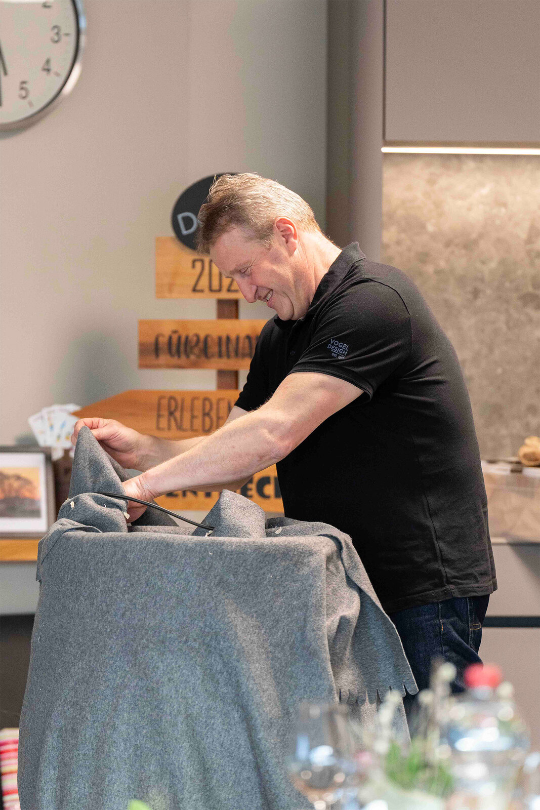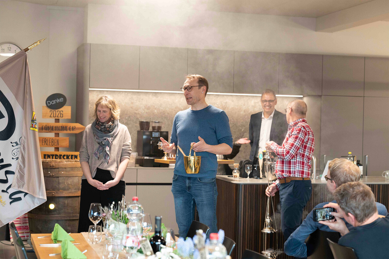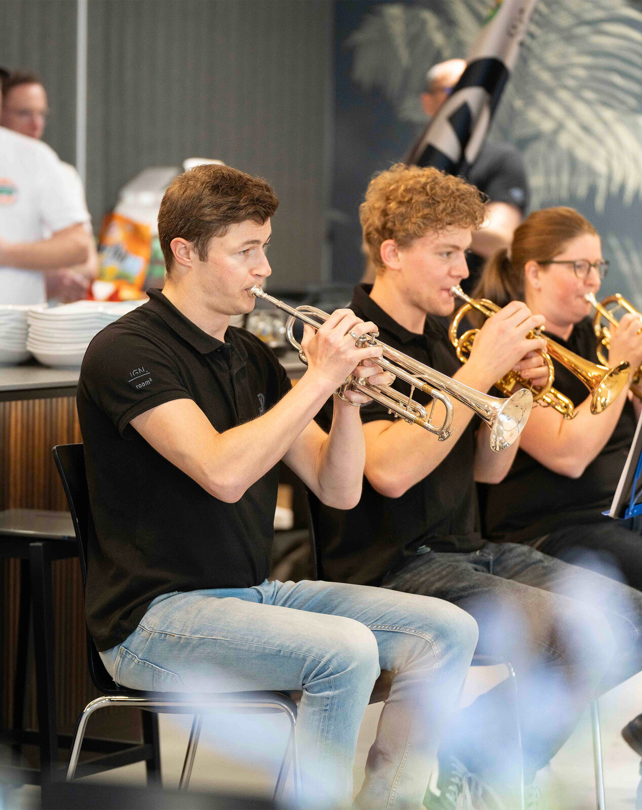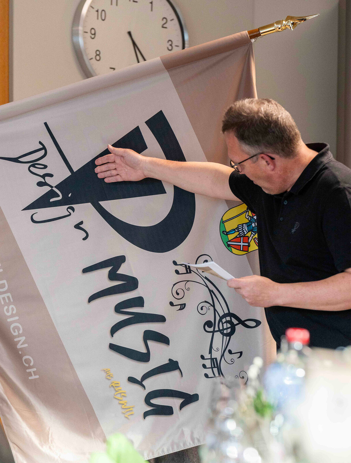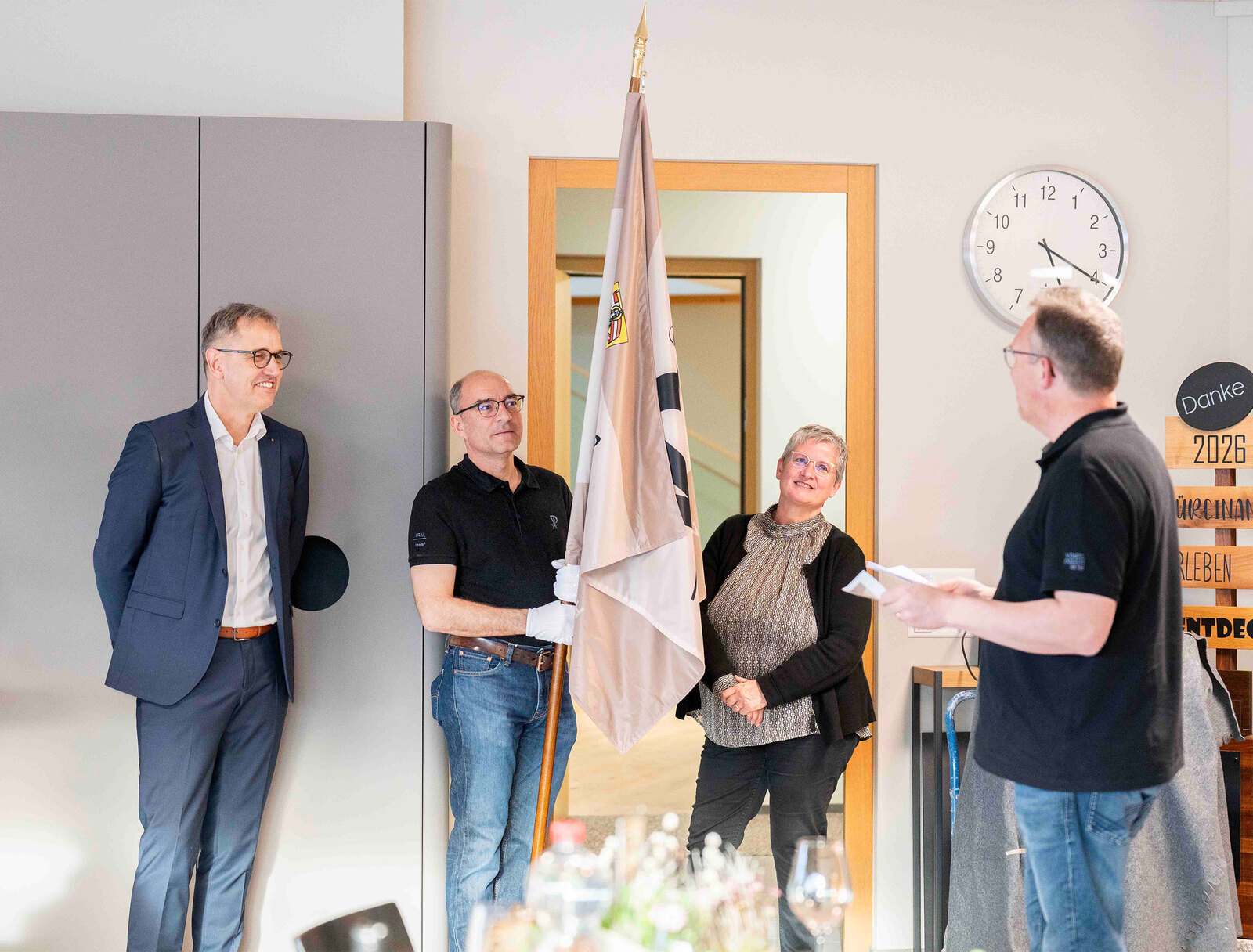 Nach der Premiere im Herbst 2024 an der RUGA folgten weitere Auftritte, unter anderem am Tag des Schweizer Holzes. Heute zählt die Formation 15 Musikantinnen und Musikanten – von Lernenden bis zu Mitarbeitenden aus Produktion, Büro und Montage der Vogel Design AG – ergänzt durch die Dirigentin Doris Muff und ihren Fähnrich Kurt Bachmann. Als eines der ersten Mitglieder der Formation war er bereits Fähnrich, als es die Fahne noch gar nicht gab.