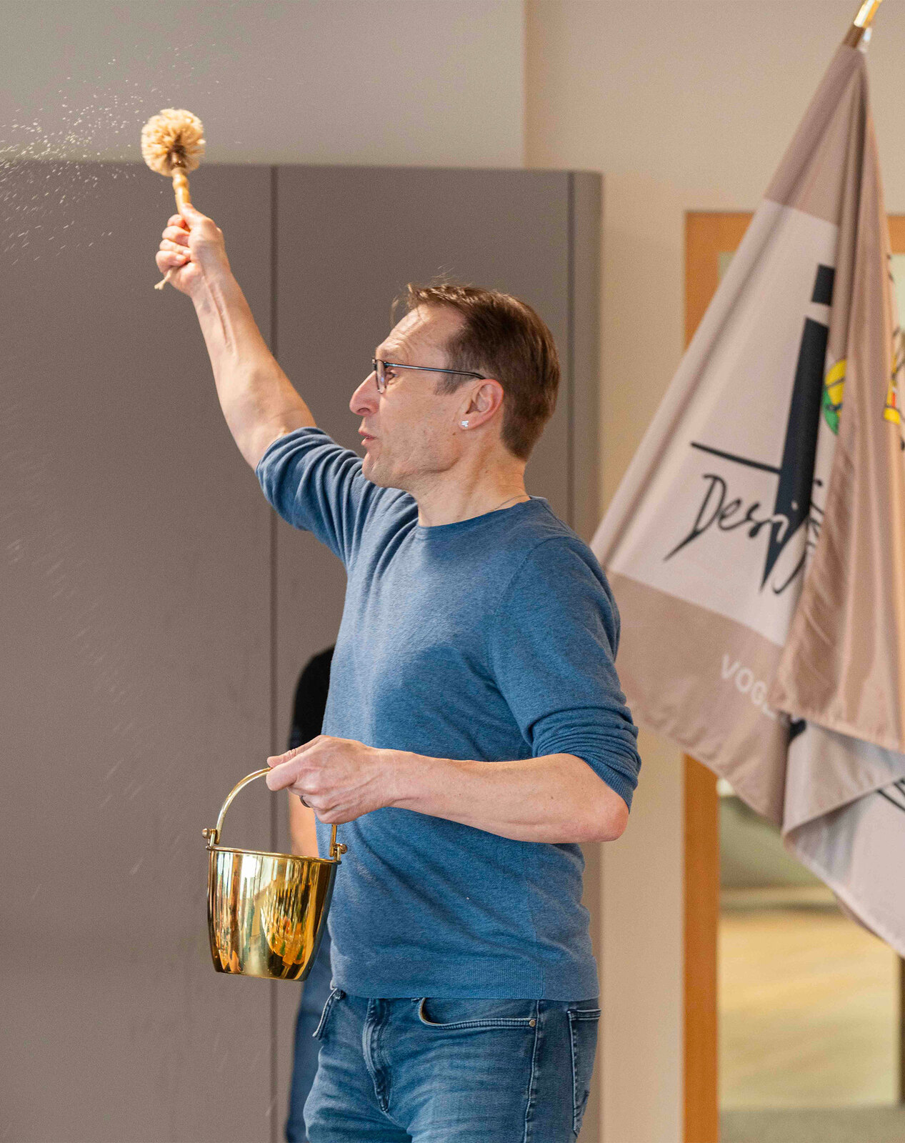 Als Fahnengotte amtet Frieda Bucher, die vom Fahnengötti Benno Geissler, Inhaber der Elektromatik AG in Ruswil, als «Urdiamant der Firma» bezeichnet wird. Beide fühlen sich geehrt und freuen sich, die Vogel Musig künftig an vielen Anlässen begleiten zu dürfen. Gesegnet wurde die Fahne von Pastoralraumleiter Adrian Wicki zusammen mit den Ministranten Irene Geisseler und Thomas Bucher mit Weihrauch, Sägemehl und Weihwasser.